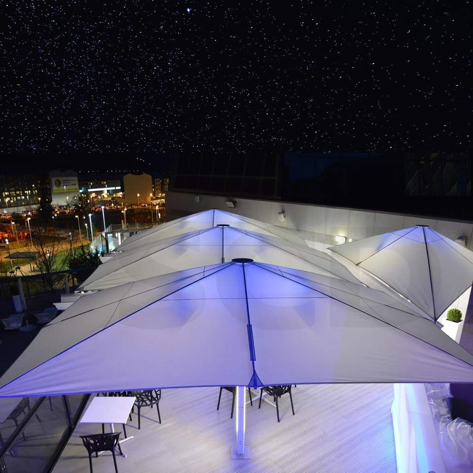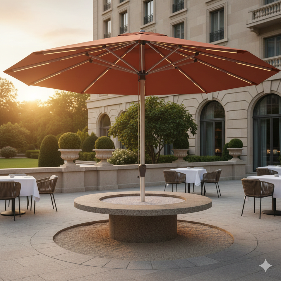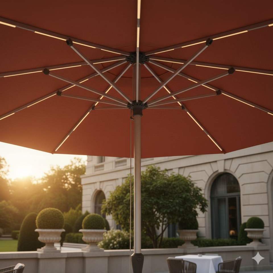 ร่มกันแดดอลูมิเนียมขนาดใหญ่พิเศษสำหรับใช้งานกลางแจ้ง เหมาะสำหรับโรงแรม สวนสาธารณะ และการใช้งานเชิงพาณิชย์ พร้อมฐานทรายและสีที่ปรับแต่งได้