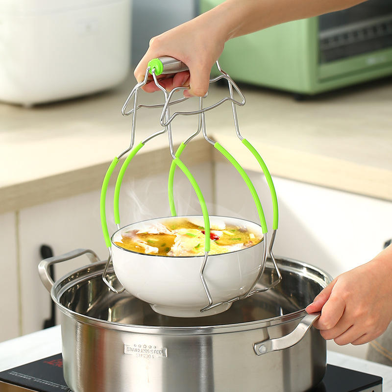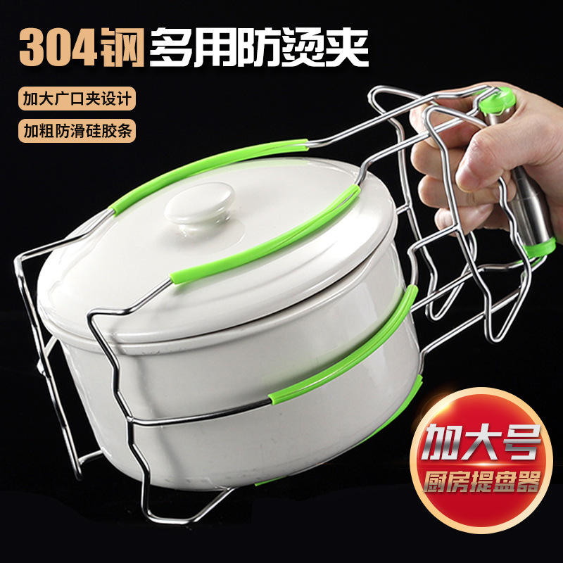 ที่คีบจานกันความร้อนขนาดใหญ่พิเศษ สแตนเลส สำหรับยกจานนึ่งในครัว ด้ามจับกันลื่น สำหรับทำอาหาร