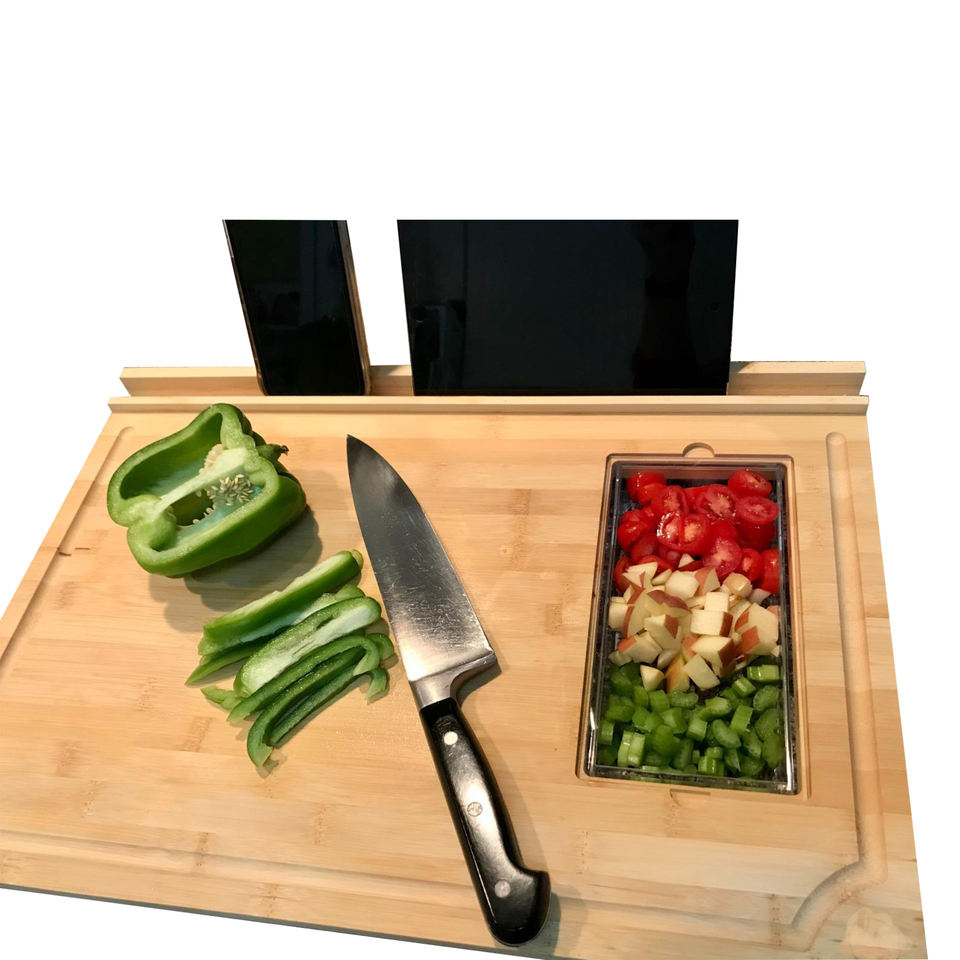 เขียงไม้ไผ่ขยายได้พร้อมภาชนะบรรจุในครัว