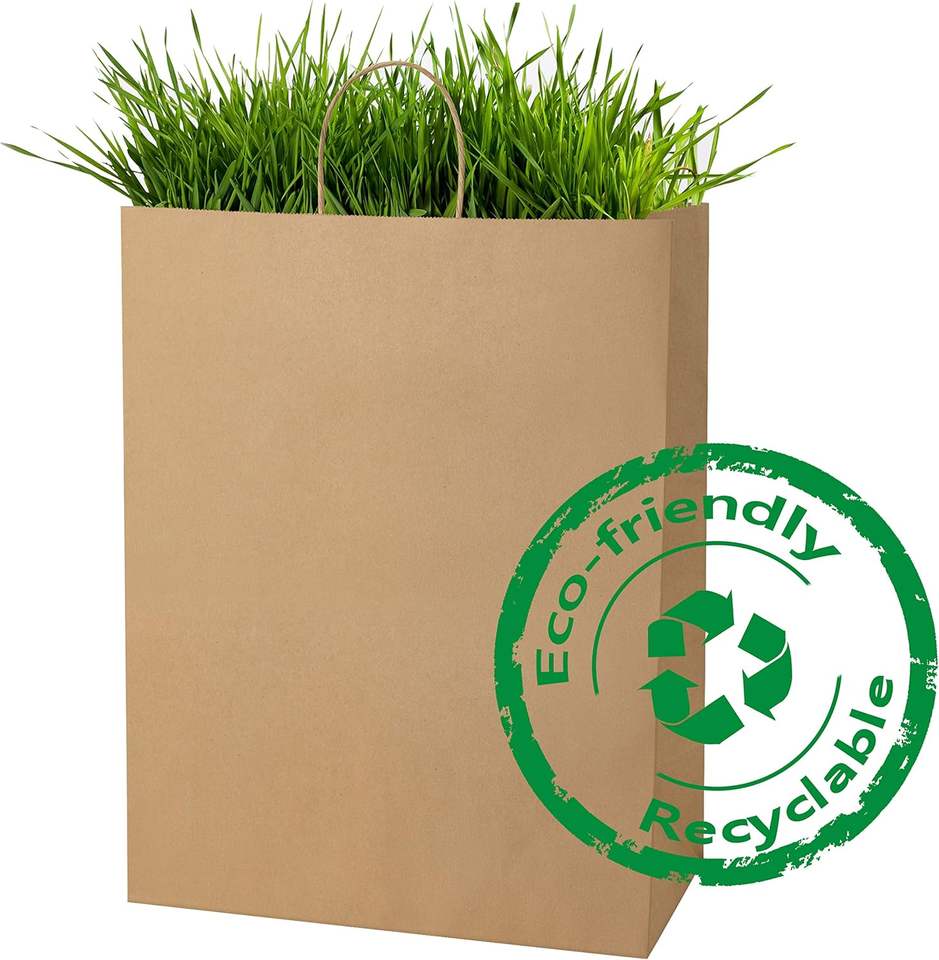 ถุงกระดาษคราฟท์สีน้ำตาลขนาดใหญ่พิเศษ พิมพ์โลโก้ตามสั่ง 13x7x17 นิ้ว พร้อมหูหิ้ว ถุงบรรจุภัณฑ์รีไซเคิลสำหรับเสื้อผ้าและรองเท้า