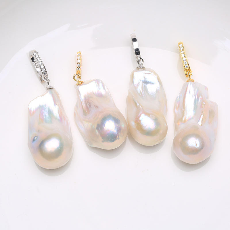 จี้ไข่มุกน้ำจืดทรงบาร็อคขนาดใหญ่พิเศษ สีสันสดใส ตัวล็อคเงินแท้ S925 ปรับขนาดได้ ดีไซน์ทันสมัย