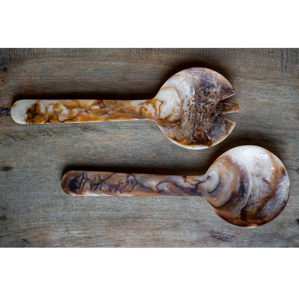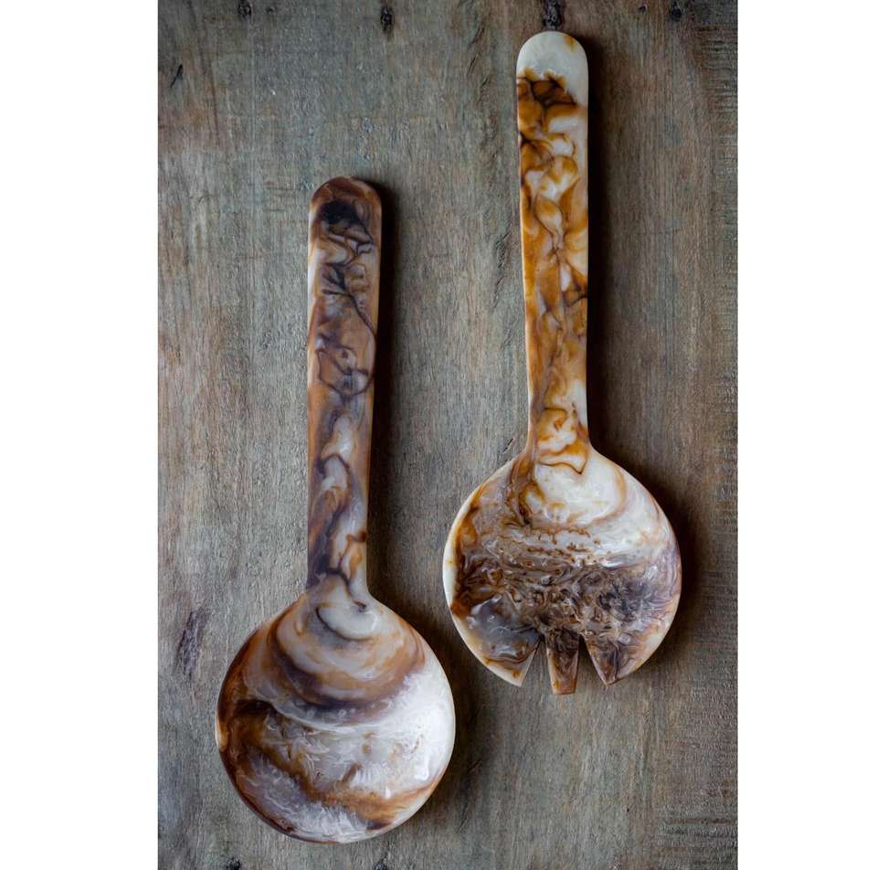 ชุดช้อนส้อมเสิร์ฟสลัดทำมือขนาดใหญ่พิเศษ สีชมพูเรซิ่น 2 ชิ้น อุปกรณ์ครัว ผลิตในอินเดีย
