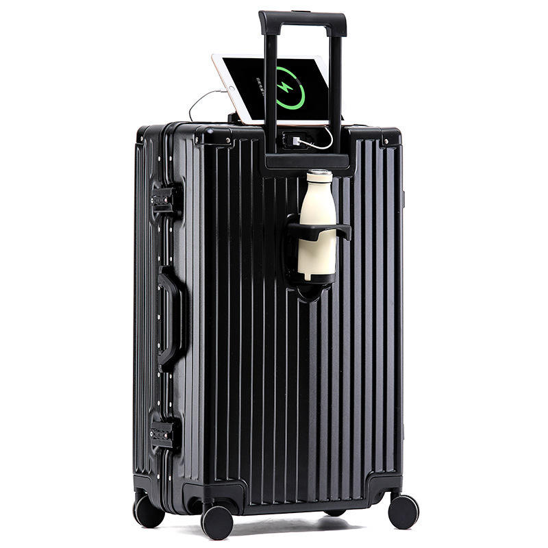 กระเป๋าเดินทางขนาดใหญ่พิเศษสำหรับผู้ชายผู้หญิงความจุ26นิ้วกรอบอลูมิเนียม28นิ้วแบบดึงก้านแบบรหัสผ่านกล่องขึ้นเครื่อง