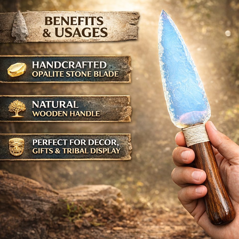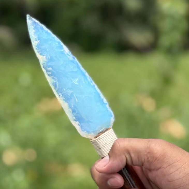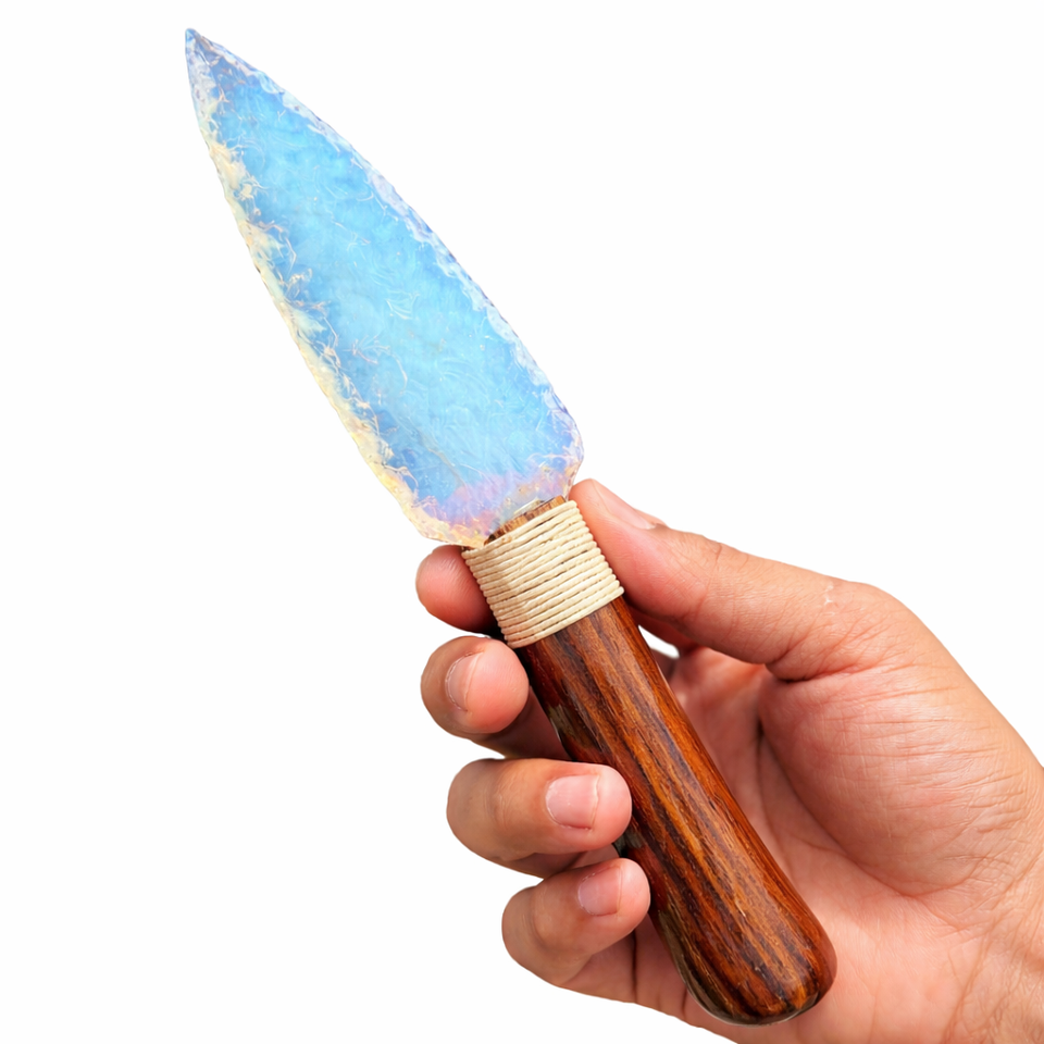ดาบปลายหอกคริสตัลโอปาไลต์ทำมือขนาดใหญ่พิเศษ ของตกแต่งทางจิตวิญญาณ ด้ามไม้แกะสลักหิน งานฝีมือหินแกะสลัก ของตกแต่ง