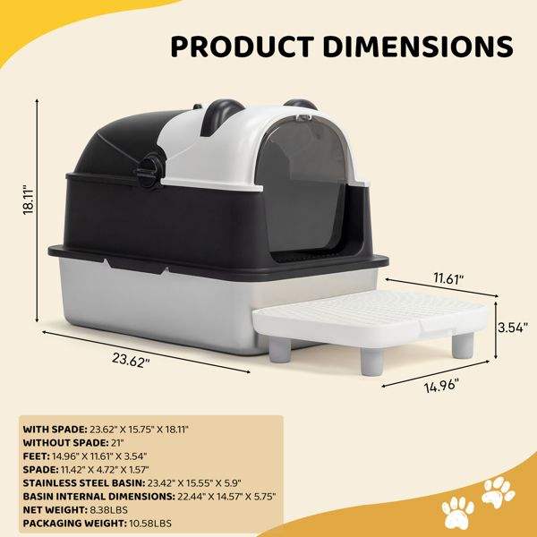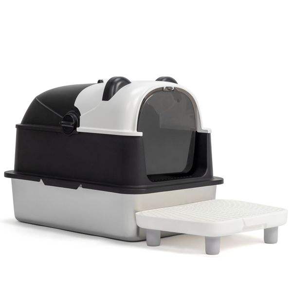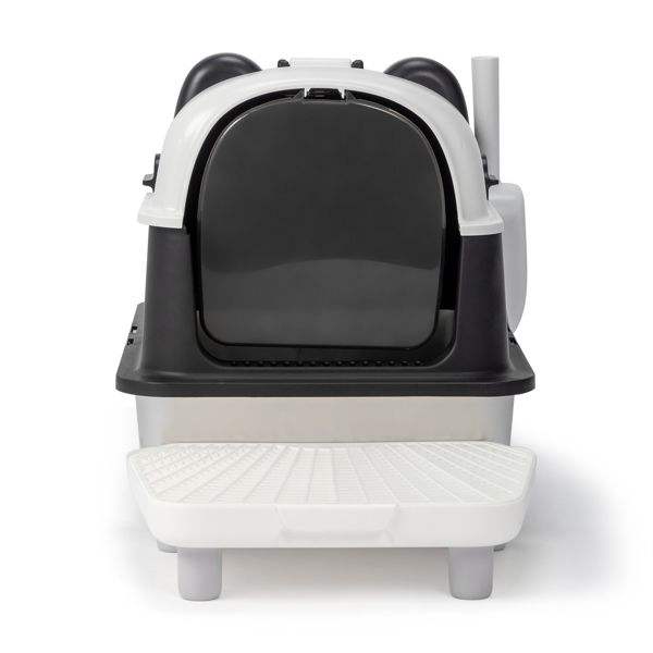 กระบะทรายแมวสแตนเลสขนาดใหญ่พิเศษ ลายแพนด้า สำหรับแมวตัวใหญ่ พร้อมถาดรองโลหะแบบถอดได้