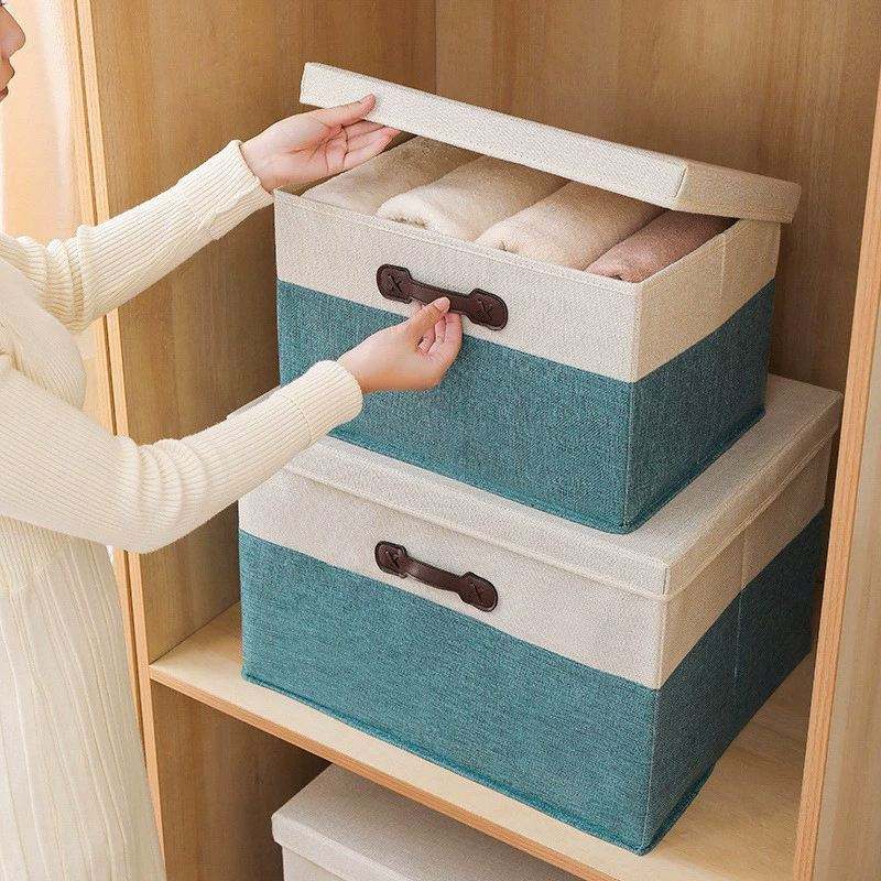 ตะกร้าเก็บของขนาดใหญ่พิเศษพร้อมฝาปิด กล่องผ้าพับได้สำหรับจัดระเบียบตู้เสื้อผ้า