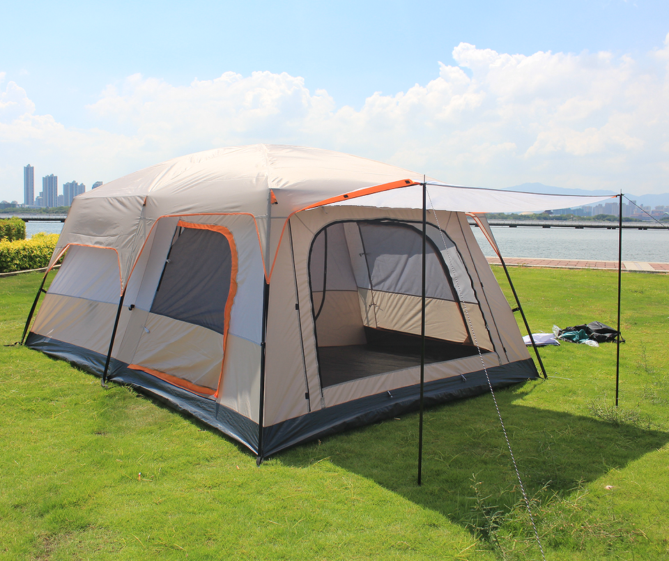 เต็นท์ขนาดใหญ่พิเศษ 8+ คน เต็นท์ครอบครัวแบบเคบิน 2 ห้องนอน 3 ประตู 3 หน้าต่าง มุ้งลวดสองชั้น เต็นท์ขนาดใหญ่ หลายประตู