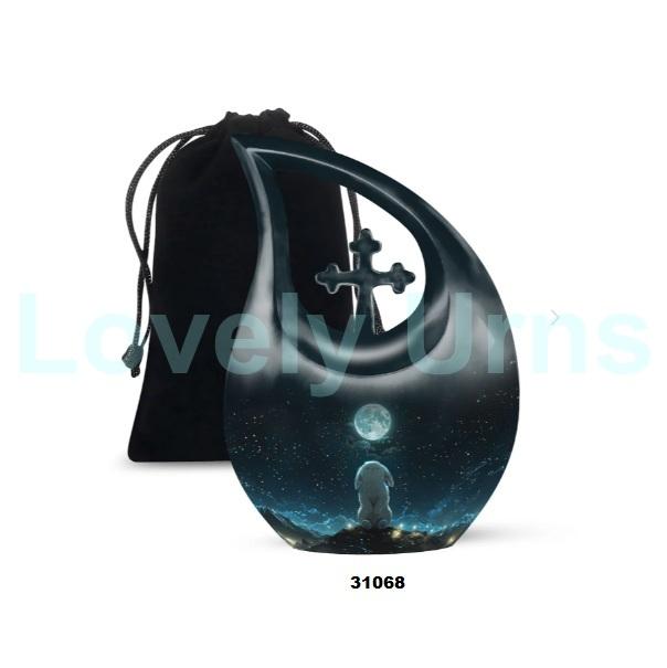 โกศสีขาวรูปกระต่ายใส่เถ้ากระดูกของมนุษย์ตกแต่งด้วยหยดน้ำตาขนาดใหญ่พร้อมถุงฟรี