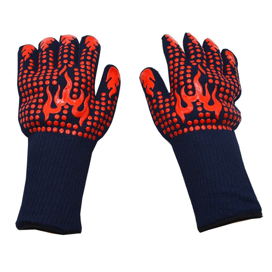 ถุงมือกันความร้อนสำหรับใช้งานกลางแจ้งแบบยาวพิเศษ ทำจากซิลิโคน สำหรับทำอาหารและปิ้งย่าง
