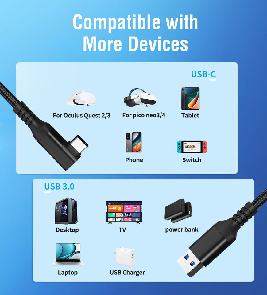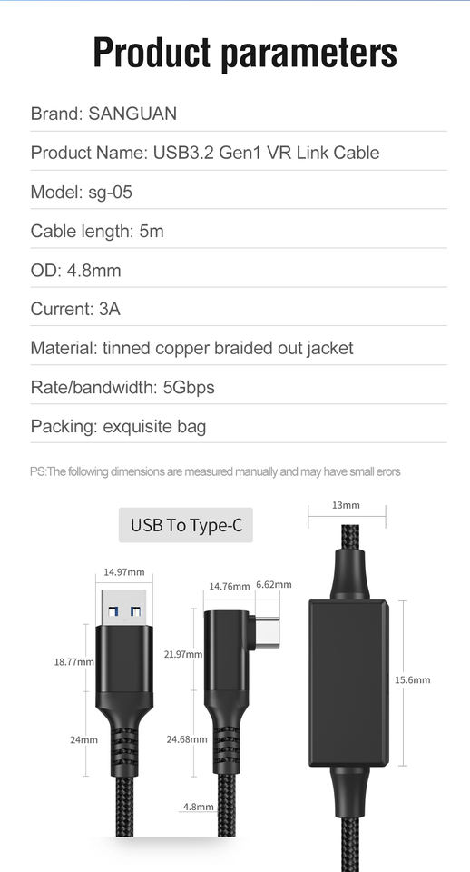 สายเคเบิล VR พอร์ตพลังงานพิเศษ 5 เมตร 9V/3A ชาร์จเร็ว เล่นต่อเนื่อง ถ่ายโอนข้อมูล 5Gbps USB 3.2 Gen1 ไนลอน สำหรับเล่นเกม VR และคอมพิวเตอร์