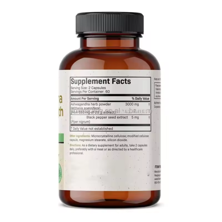 แคปซูลอัศวกันธาสูตรเข้มข้นพิเศษ 3000 มก. อาหารเสริมอะแดปโตเจนจากธรรมชาติเพื่อเพิ่มพลังงาน ความมุ่งมั่น ปรับอารมณ์ และบรรเทาความเครียด