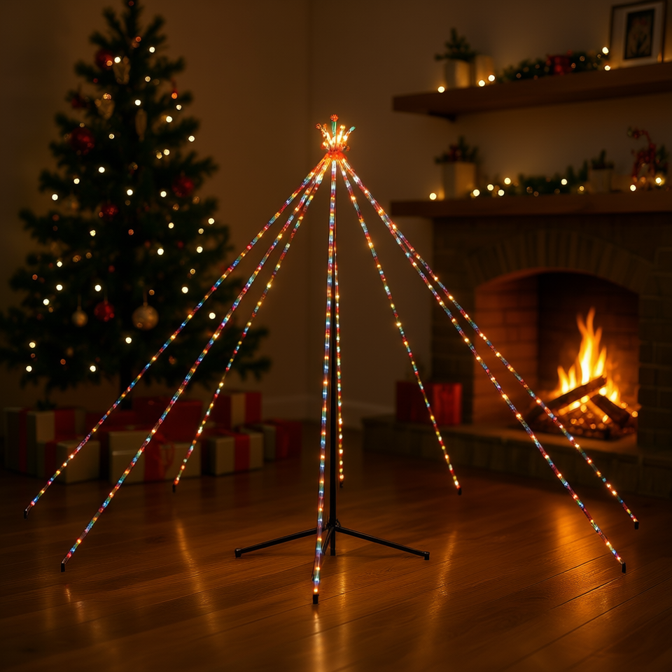 ต้นคริสต์มาสทรงกรวยพลาสติกสูงพิเศษ หลากสี ใช้แบตเตอรี่ พร้อมไฟ LED ติดตั้งง่าย