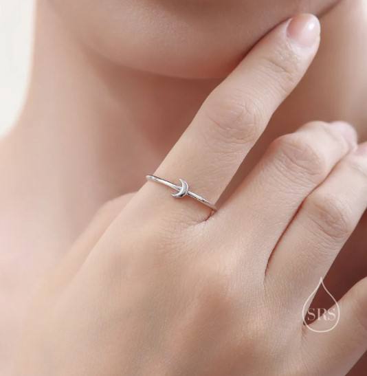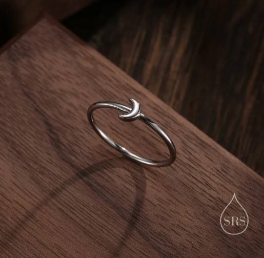 แหวนเงินแท้รูปพระจันทร์เสี้ยวเล็กพิเศษ ดีไซน์เรียบง่ายและมินิมอล