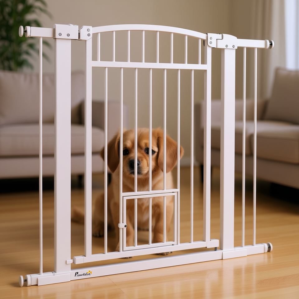 ประตูสำหรับสัตว์เลี้ยงแบบกว้างพิเศษ 30-41 นิ้ว สูง 37 นิ้ว พร้อมประตูสำหรับแมว สำหรับสุนัข ใช้ภายในอาคาร