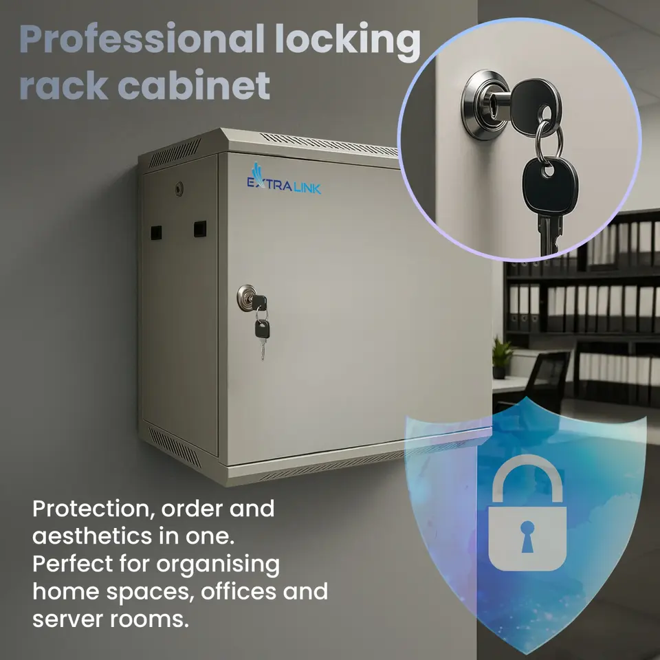 Extralink 12U ผนังติดตั้ง ASP GRAY Network cabinet 600x450พร้อมประตูเหล็กสต็อกพร้อมสำหรับดาต้าเซ็นเตอร์เซิร์ฟเวอร์