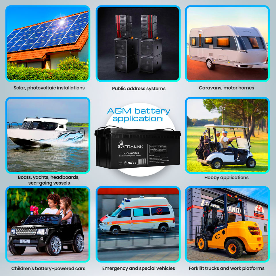 แบตเตอรี่เอ็กซ์ตร้าลิงค์ AGM 12V 200Ah ไม่ต้องดูแลรักษา สำหรับอินเวอร์เตอร์พลังงานแสงอาทิตย์ ยูพีเอส แบตเตอรี่กรด AGM 200Ah 55 กก.