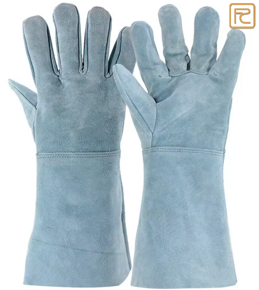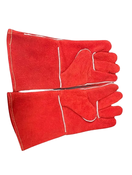 ถุงมือเชื่อมแบบแยกวัวกันความร้อนสูงทนทานต่อการเกิดไฟไหม้ถุงมือหนังสองชั้นเพื่อความปลอดภัยสูงเอ็กซ์แอลเกรดอาหารป้องกันแขน