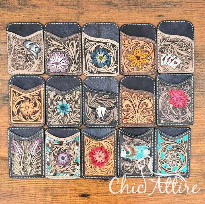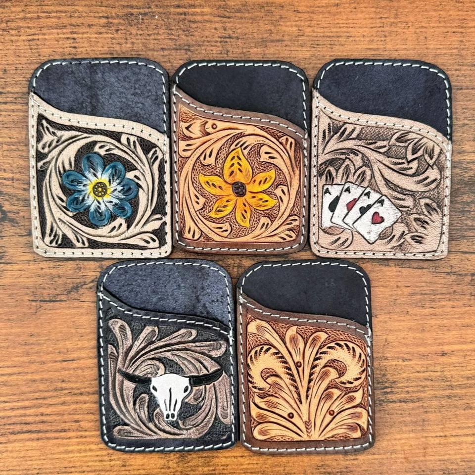 Extreme Quality Tooled Leather Credit Card Holders Sunflower Card Case Western Genuine Leather Pocket Wallet Gift for Him & Her