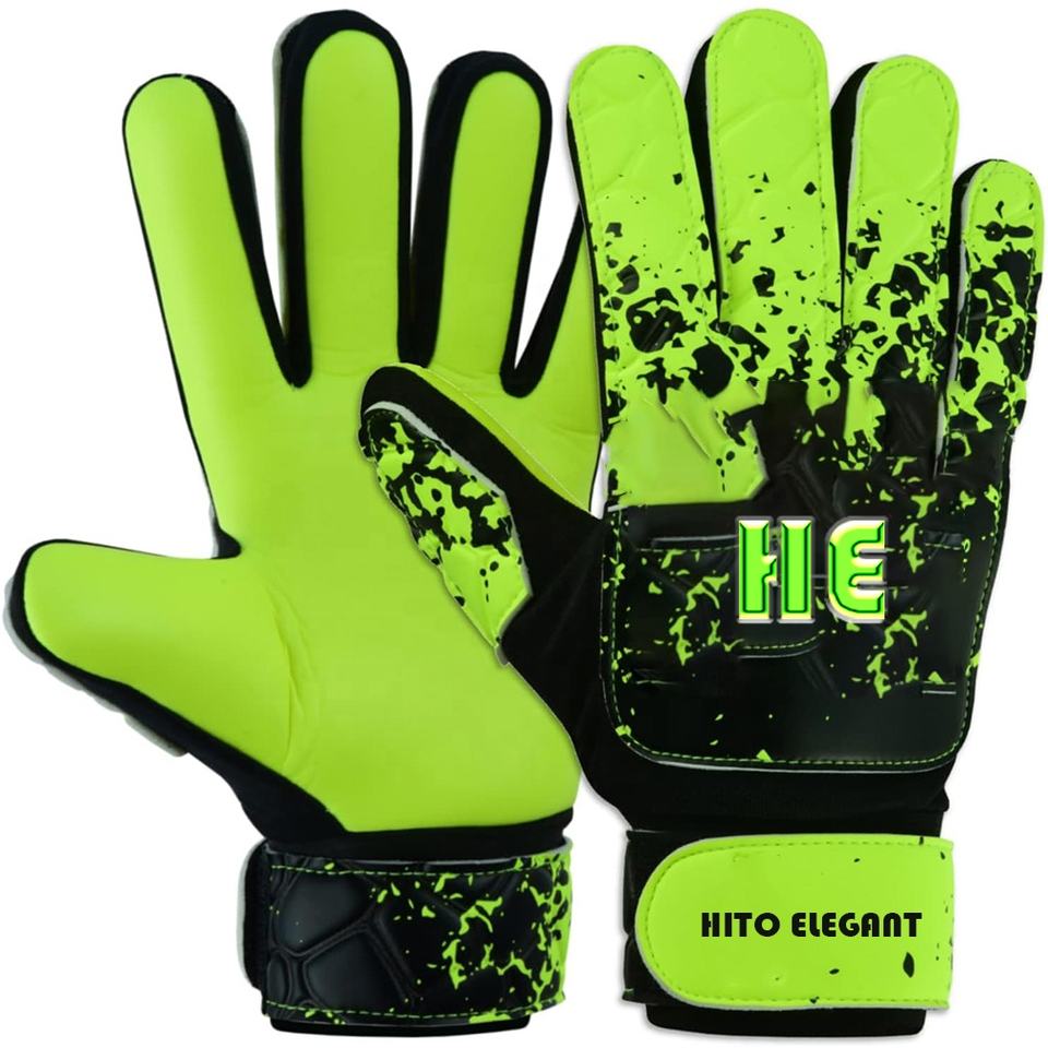 ถุงมือผู้รักษาประตูฟุตบอลคุณภาพสูงแบบขายส่ง ดีไซน์ใหม่ ระบายอากาศได้ดีและจับกระชับมือ สีเขียวและดำ