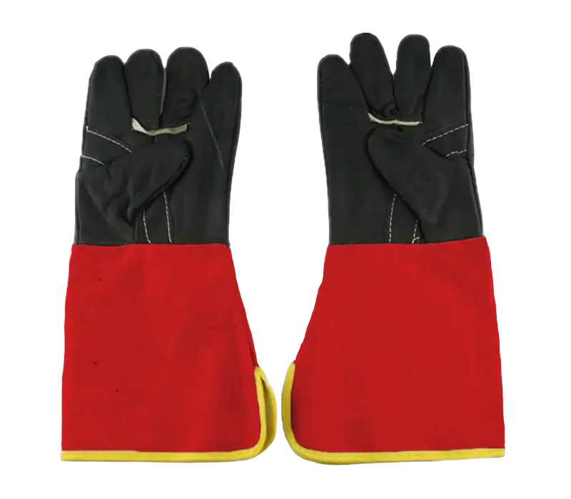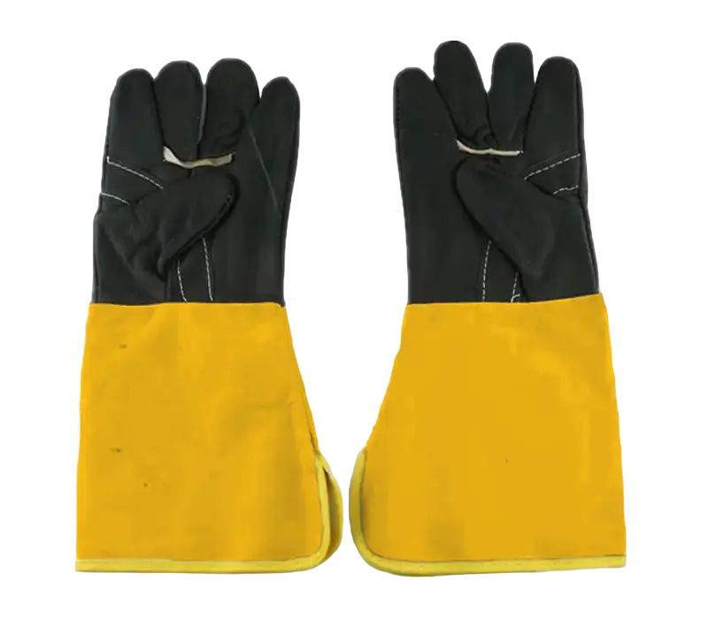 ถุงมือทำงานเชื่อมหนังระบายอากาศได้ดีถุงมือทำงานเชื่อมโลหะอย่างดีเยี่ยมโลโก้ออกแบบได้ตามต้องการ