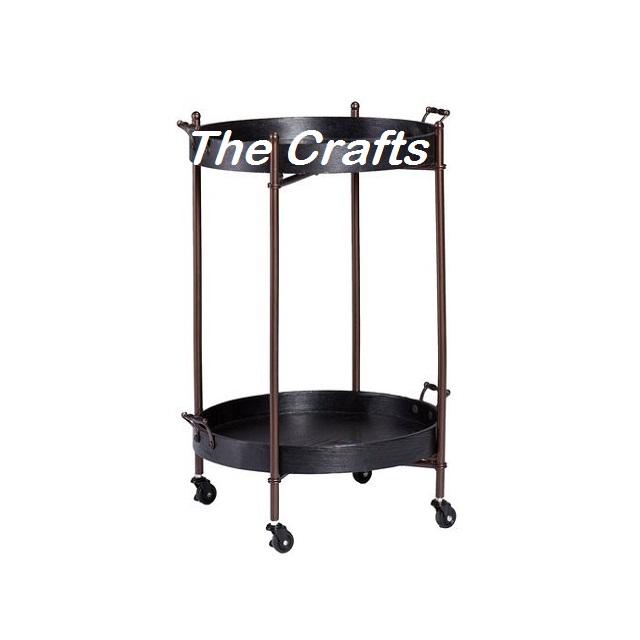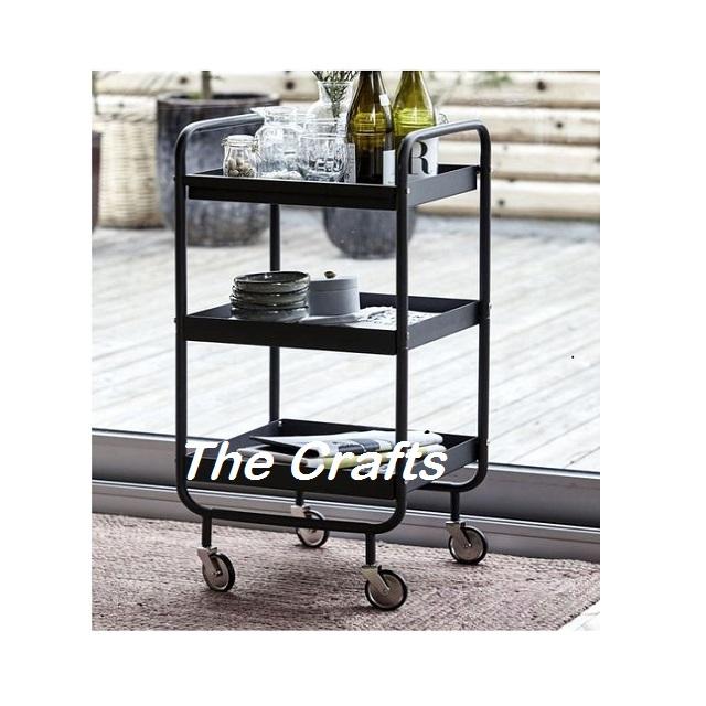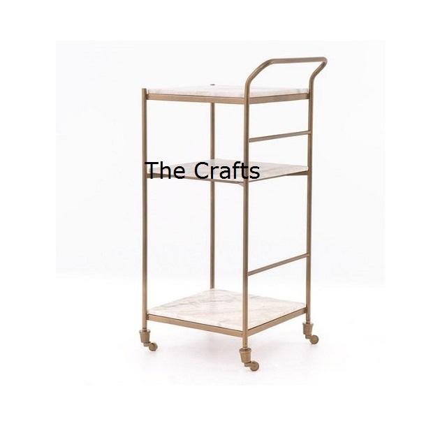 รถเข็นเสิร์ฟอาหารดีไซน์สวยหรู ผลิตจากไม้และโลหะ สำหรับอุปกรณ์ครัว