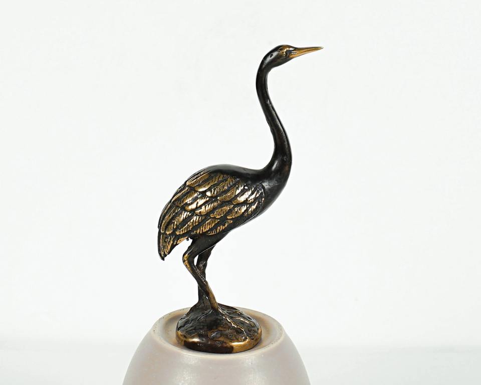 รูปปั้นนกกระเรียนทองเหลืองสะดุดตา งานประติมากรรมตกแต่งทันสมัย เหมาะสำหรับตกแต่งห้องนั่งเล่น ตกแต่งชั้นวางของ และตกแต่งผนัง