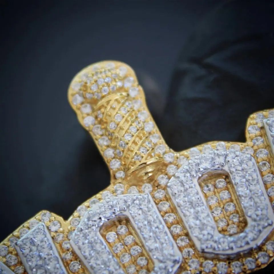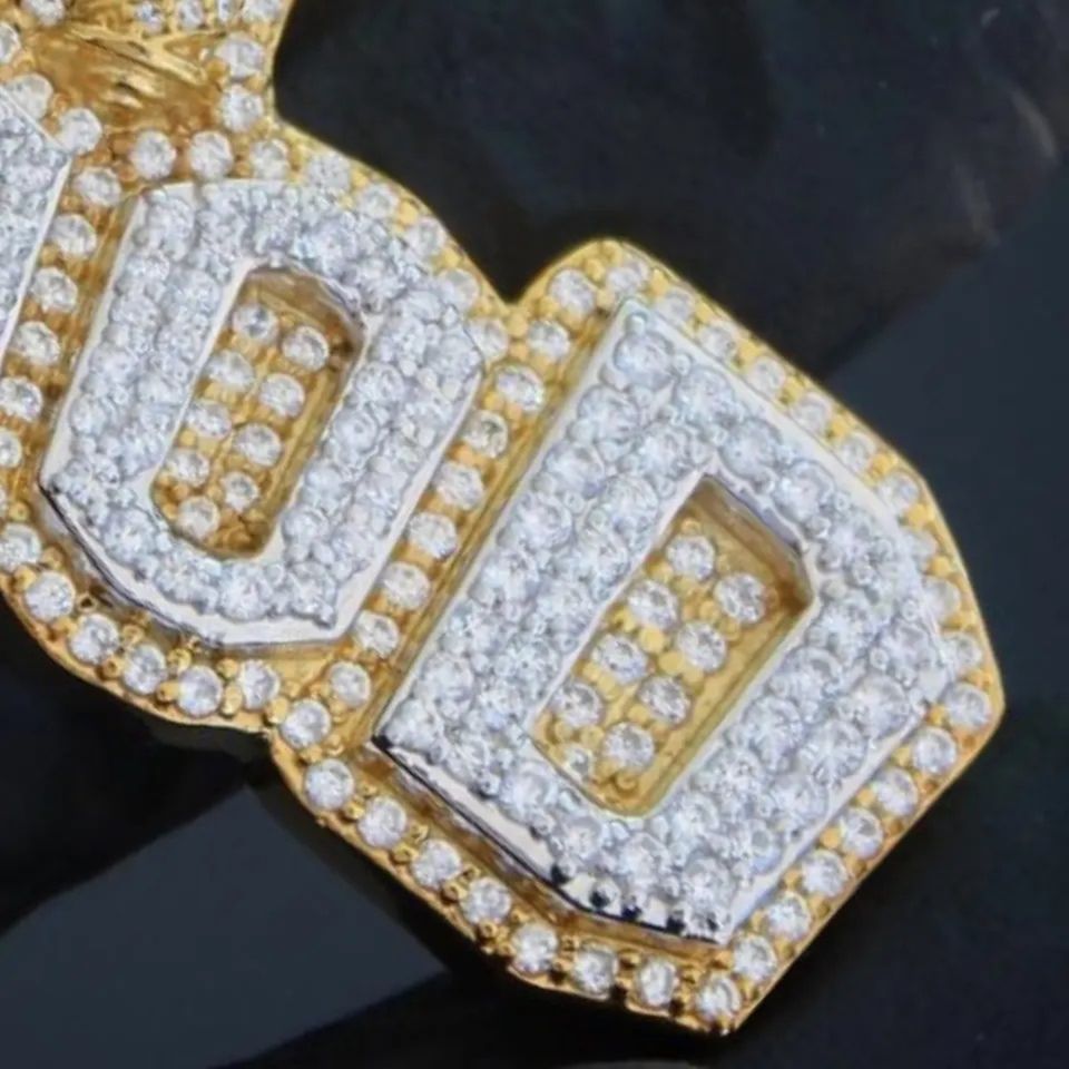 เครื่องประดับฮิปฮอปที่สะดุดตาในทองคำ10K สีเหลืองถูกทำให้เย็นลงอย่างสมบูรณ์ด้วยจี้เพชรประกายทรงกลมเพชรใน VVS ชัดเจน