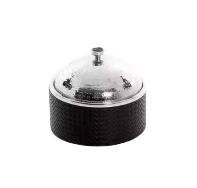 หม้อปรุงอาหารโลหะพร้อมฝาตอกทำจากหนังที่สะดุดตา