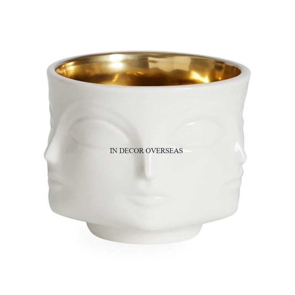ชามสำหรับเสิร์ฟและตกแต่งภายนอกสีขาวเคลือบทองรูปทรงแปลกเกรดสูงรูปทรงที่สะดุดตา