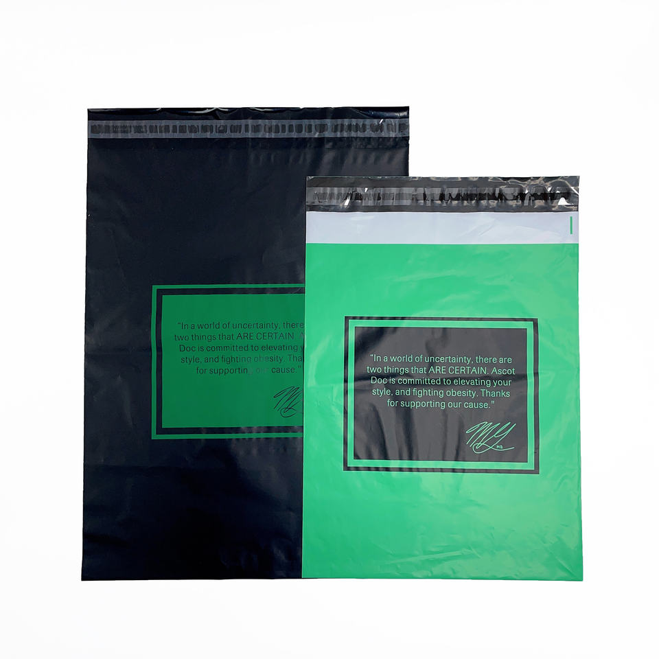 ถุงจัดส่งสีดำด้านสะดุดตา - ซองโพลีเมลเลอร์พิมพ์ลายสีเขียวแบบกำหนดเองสำหรับอีคอมเมิร์ซเสื้อผ้าแบรนด์