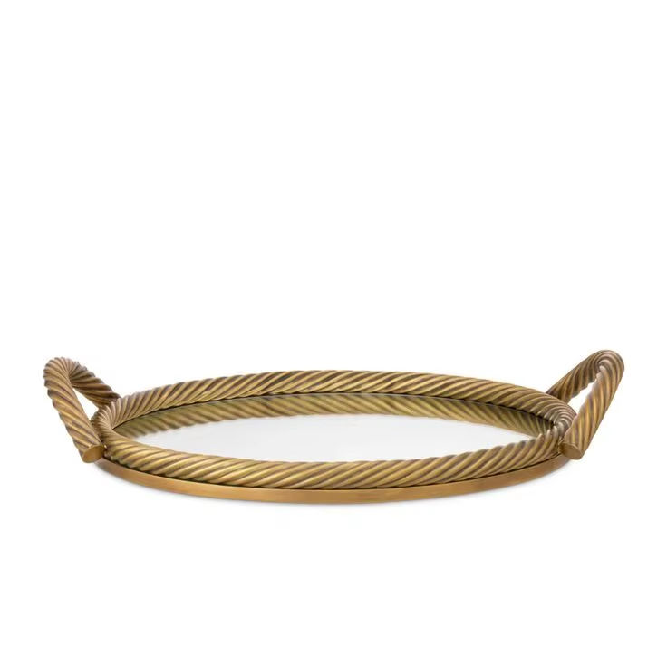 ถาดโลหะและกระจกที่ดึงดูดสายตา ออกแบบมาเพื่อเน้นสิ่งของตกแต่งด้วยพื้นผิวสะท้อนแสง