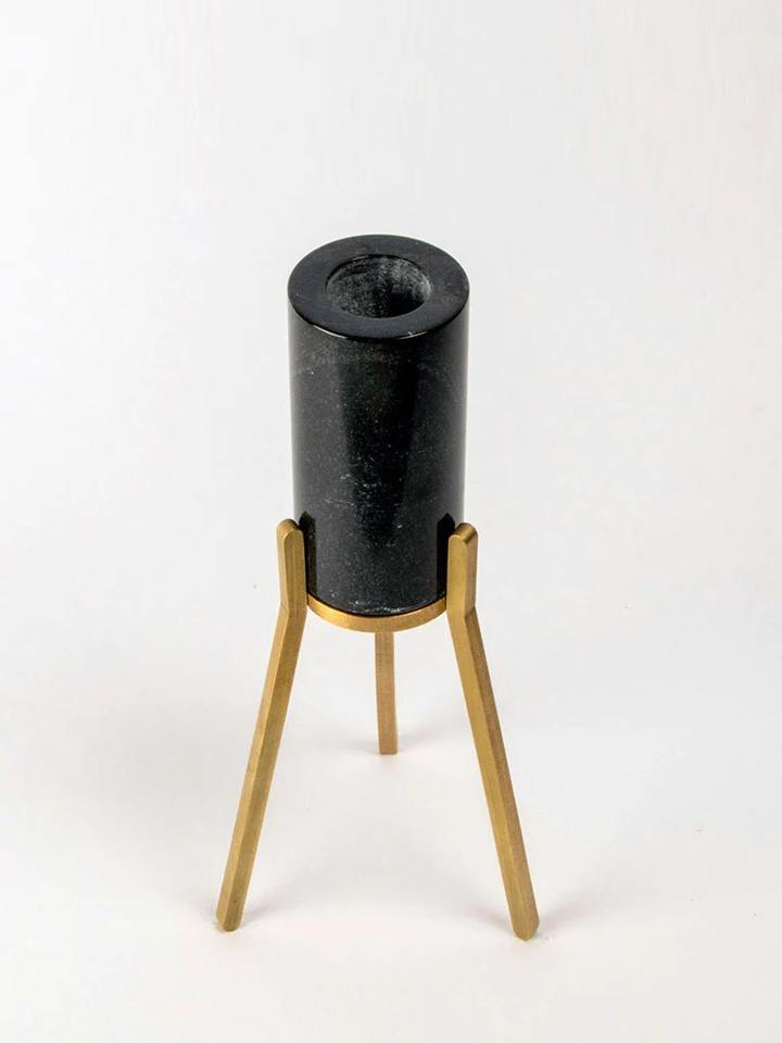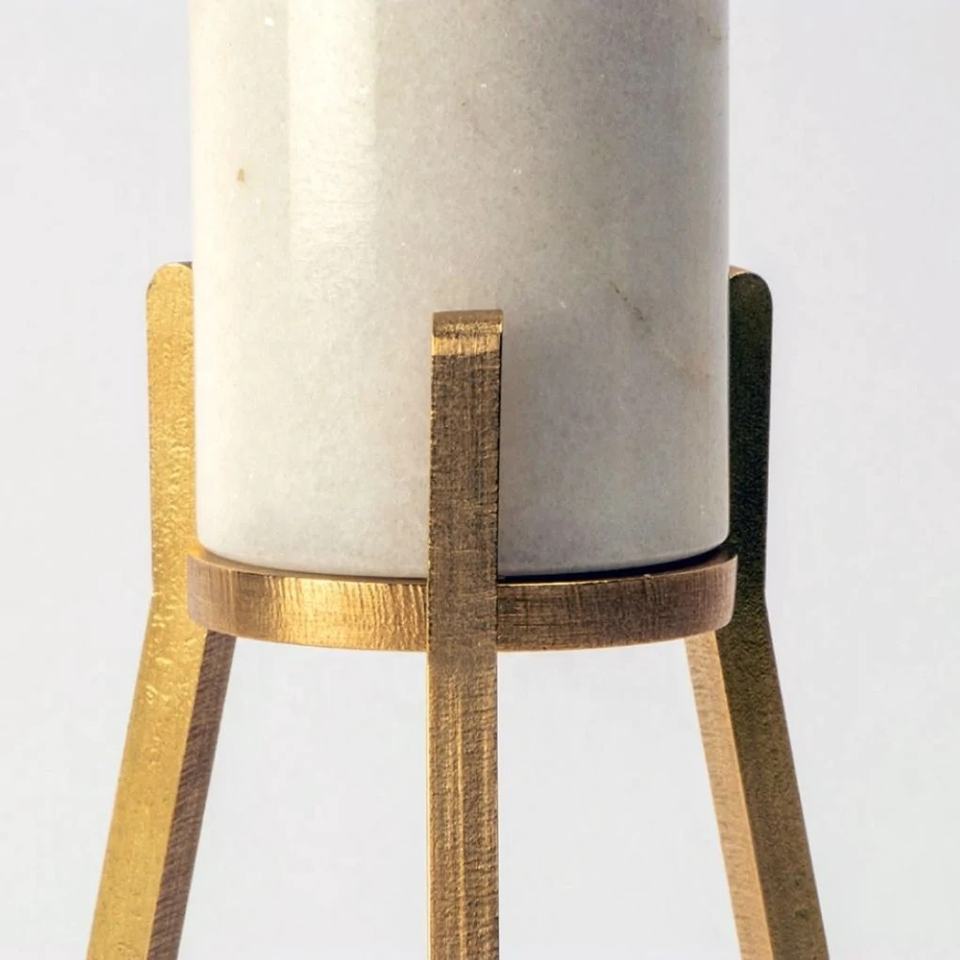 เชิงเทียนหินอ่อนสีขาวรูปทรงกระบอกพร้อมกรอบโลหะของตกแต่งบ้าน