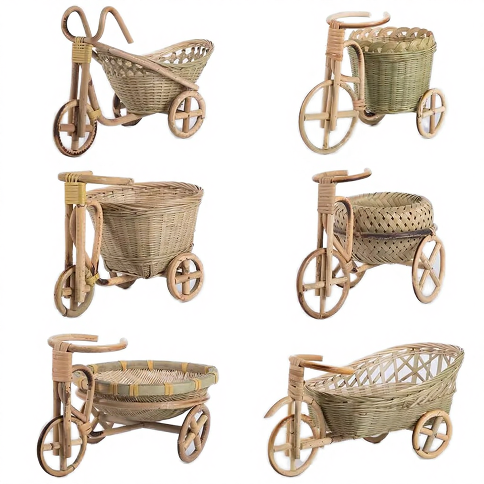 ตะกร้าจักรยานหวายไม้ไผ่ขนาดเล็ก ดีไซน์สวยงามสะดุดตา เป็นมิตรกับสิ่งแวดล้อม ใช้งานได้หลากหลาย ใส่ผลไม้ อาหาร ตกแต่งห้องครัว