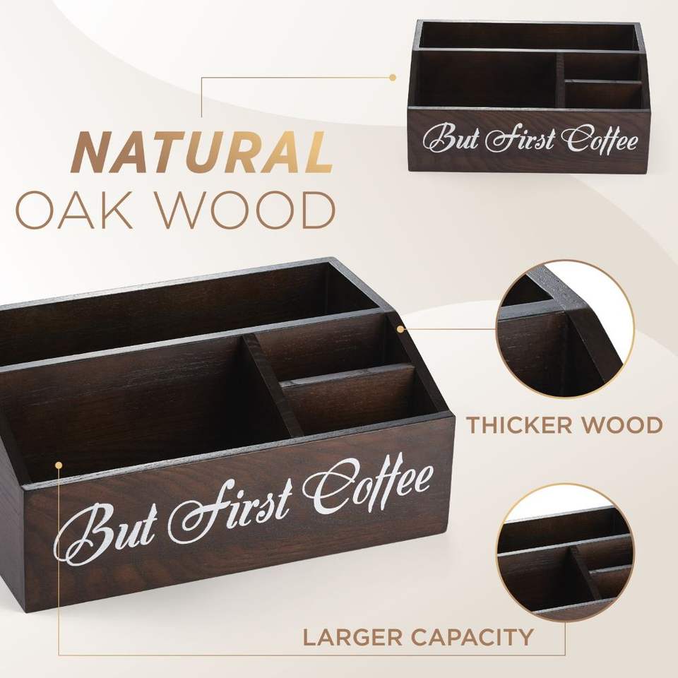 ที่จัดเก็บกาแฟที่ออกแบบให้เป็นระเบียบที่สะดุดตาอุปกรณ์จัดระเบียบสำหรับชาและกาแฟที่ทำจากไม้