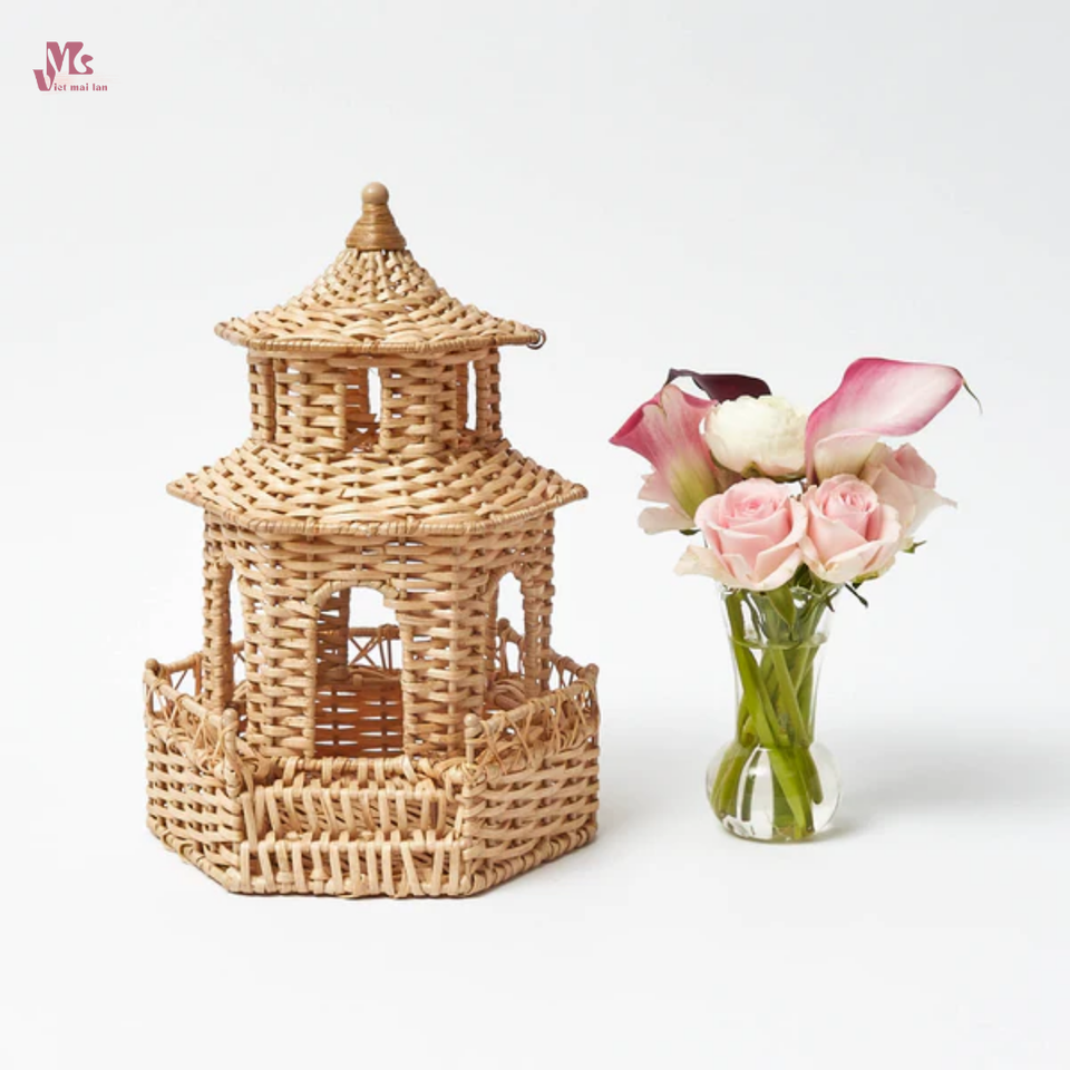 ชุดโคมไฟเจดีย์แฮนด์เมดสีฟ้าสำหรับตกแต่งบ้านงานปาร์ตี้วันหยุดผลิตจากเวียดนามดีไซน์สะดุดตา