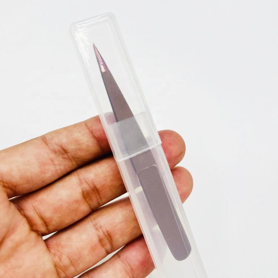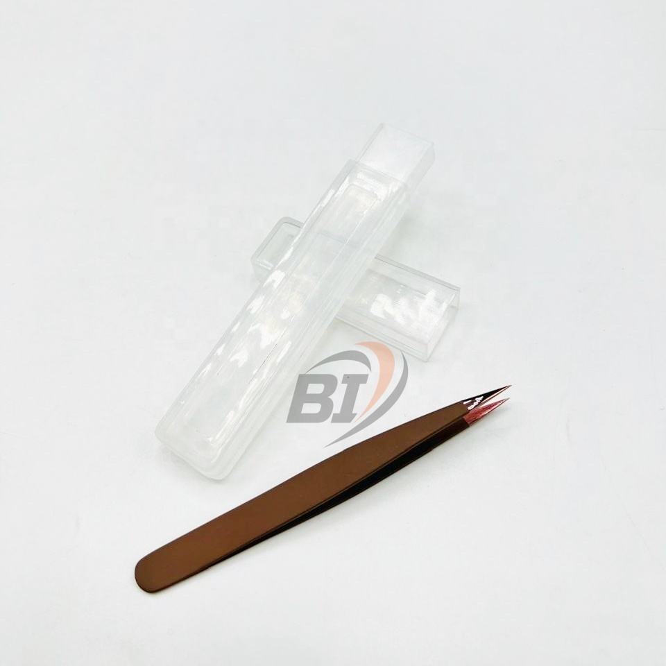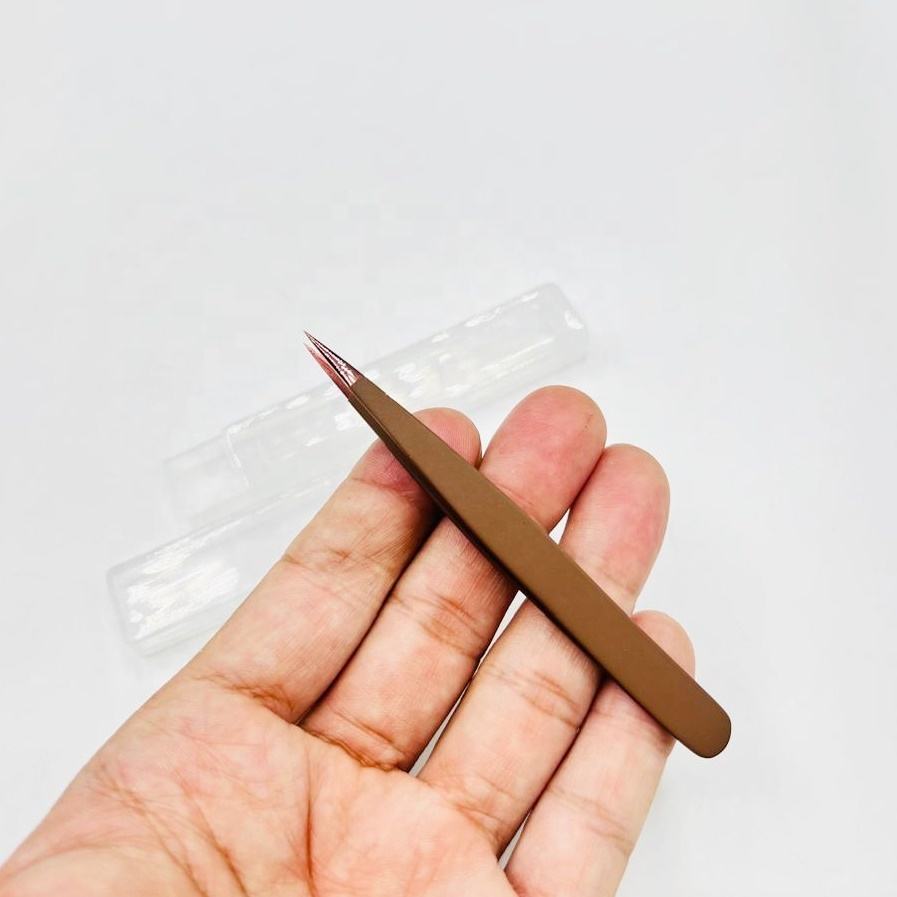 แหนบปลายคิ้วปลายกุหลาบทองอุปกรณ์ถอนขนเหล็กแบบยั่งยืนแหนบปลายแหลมเคลือบด้วยผงสีน้ำตาล