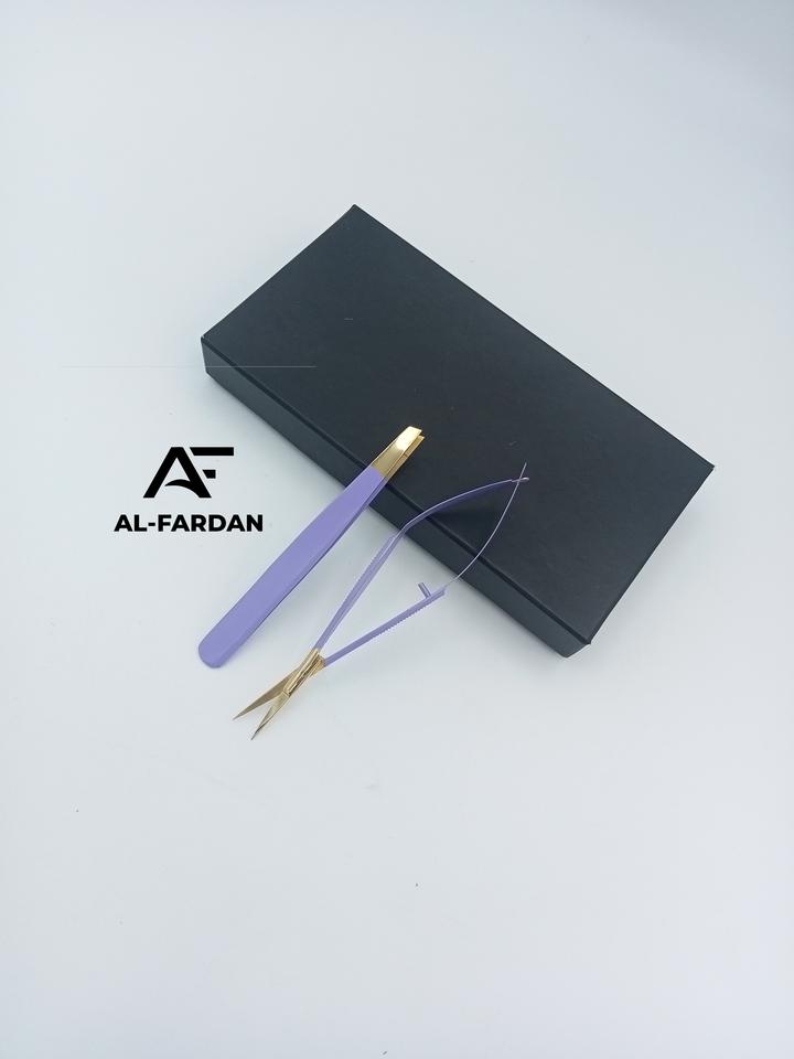 ชุดแหนบคิ้วสีม่วงพร้อมปลายสีทองแหนบสองข้างพร้อมกรรไกรสปริงและโลโก้ที่กำหนดเอง