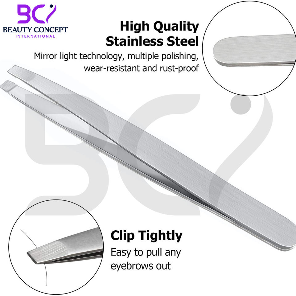 แหนบคิ้วสแตนเลส แหนบปลายเฉียง แหนบกำจัดขนบนใบหน้า แหนบคิ้วความแม่นยำสูงสำหรับผู้ชายและผู้หญิง