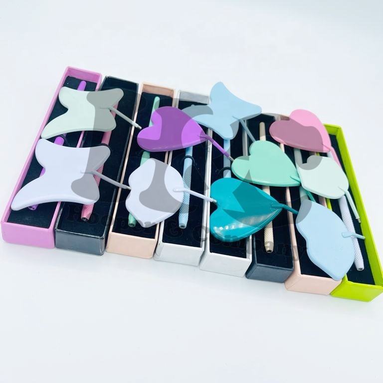 ที่ต่อขนตาเครื่องสำอางกระจกรูปหัวใจผีเสื้อดวงจันทร์ด้ามจับสแตนเลสชุบทองใส่สบายทนทาน