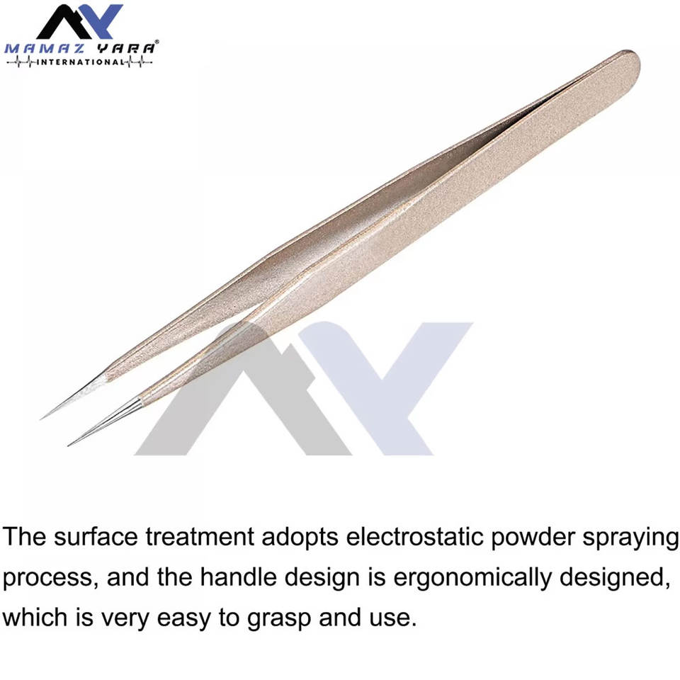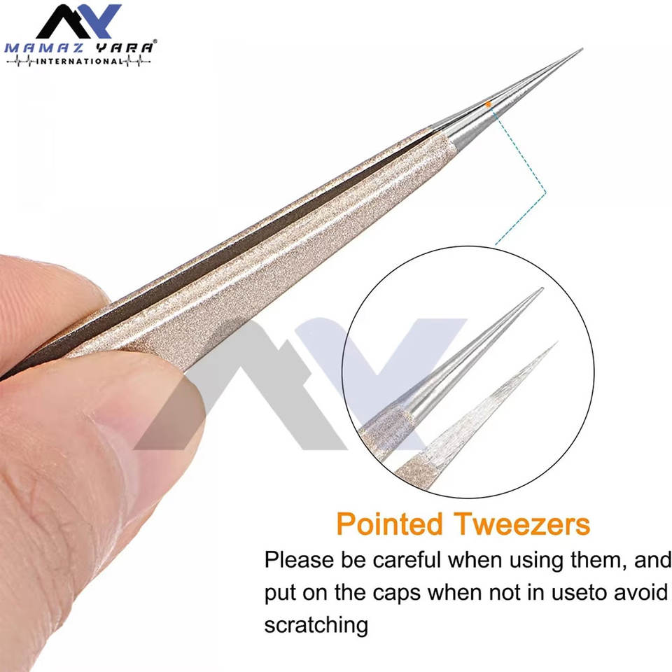 แหนบต่อขนตา 2 ชิ้น/ชุด แหนบโค้งสแตนเลส ด้ามจับเพชร สีแชมเปญ แหนบต่อขนตา