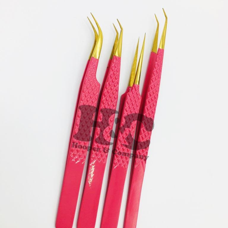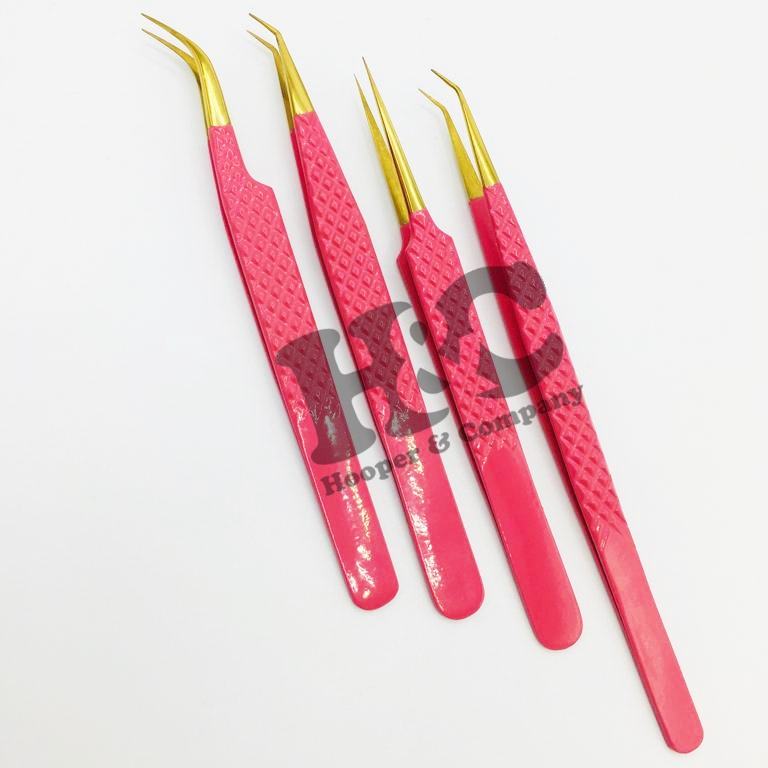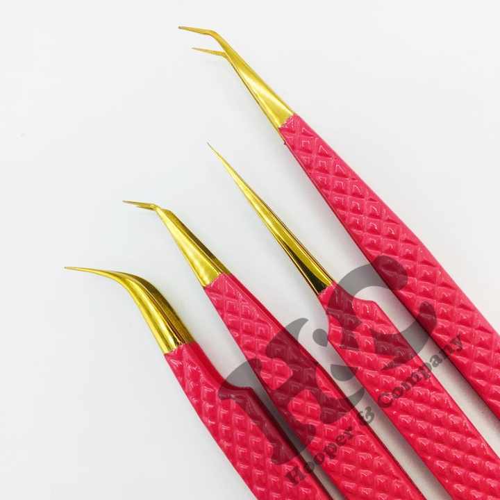 ชุดแหนบต่อขนตาทำจากสเตนเลสชุดขนตาสีแดงพร้อมปลายทอง