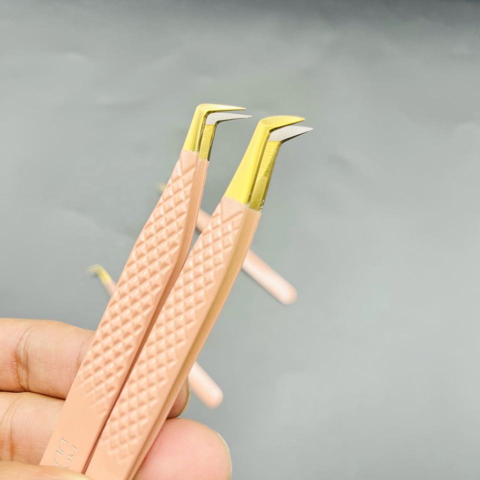 แหนบต่อขนตาปลายแหลมทองไฟเบอร์สแตนเลสด้ามจับเพชรเคลือบสีนู้ดรับการ OEM