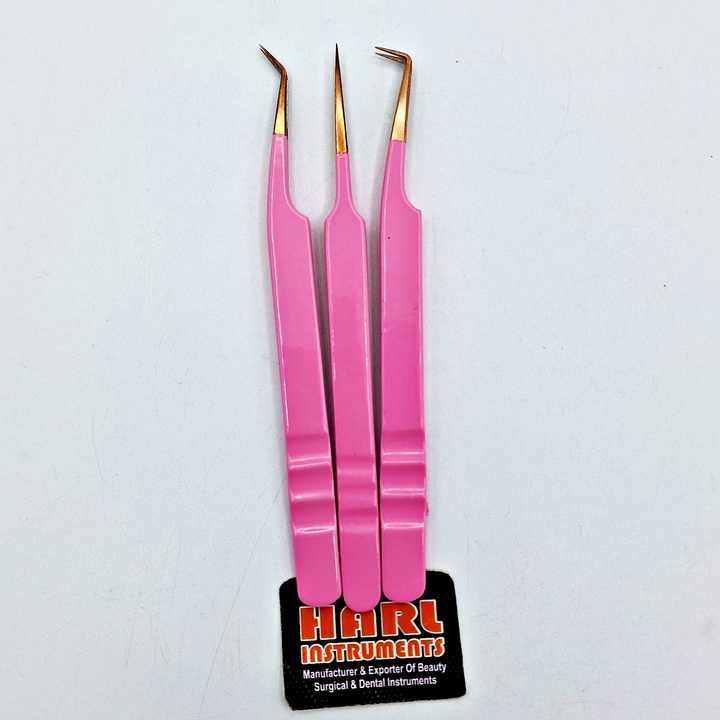 แหนบต่อขนตาปลายเรียวทำจากใยสีชมพูและสีโรสโกลด์แหนบ45และ90มุมสำหรับการต่อขนตาแบบกำหนดเอง