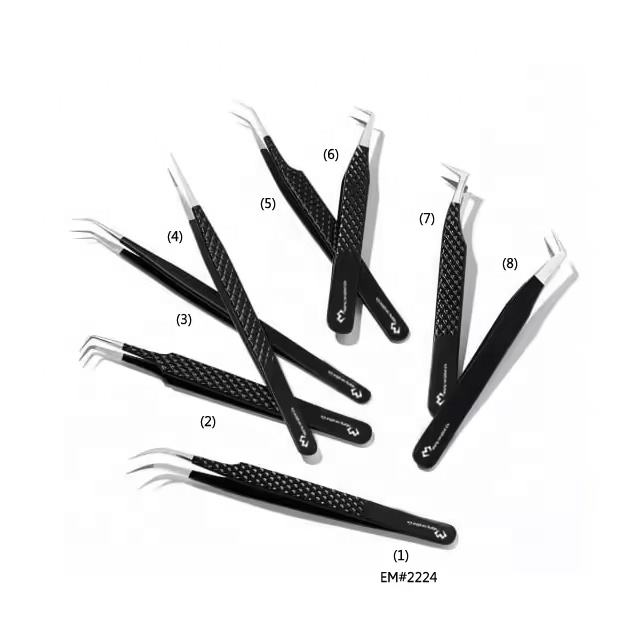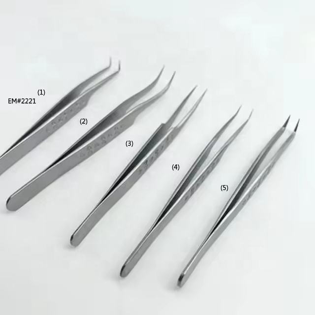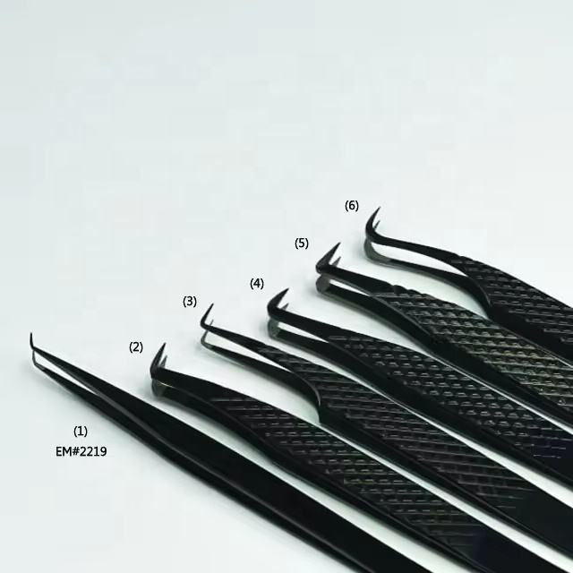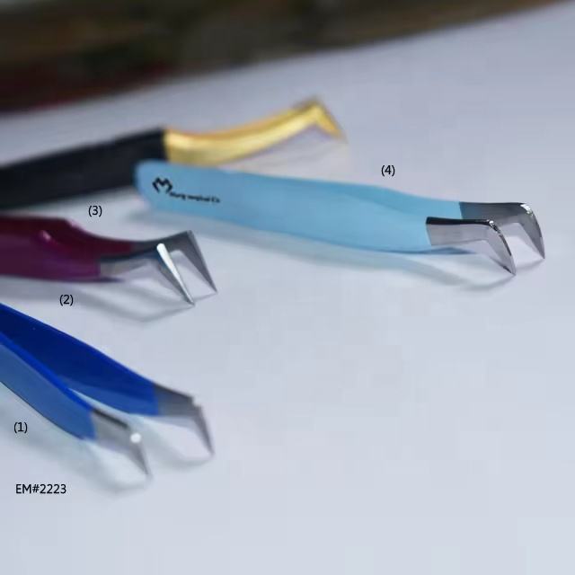 แหนบต่อขนตาสแตนเลสแบบตรงบางสี6มม. โค้งงอ45องศาเครื่องมือต่อขนตา