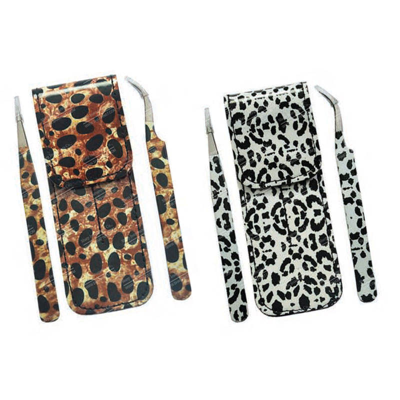 Eyelash Tweezers 2 piece Set with Magnet Button Pouch