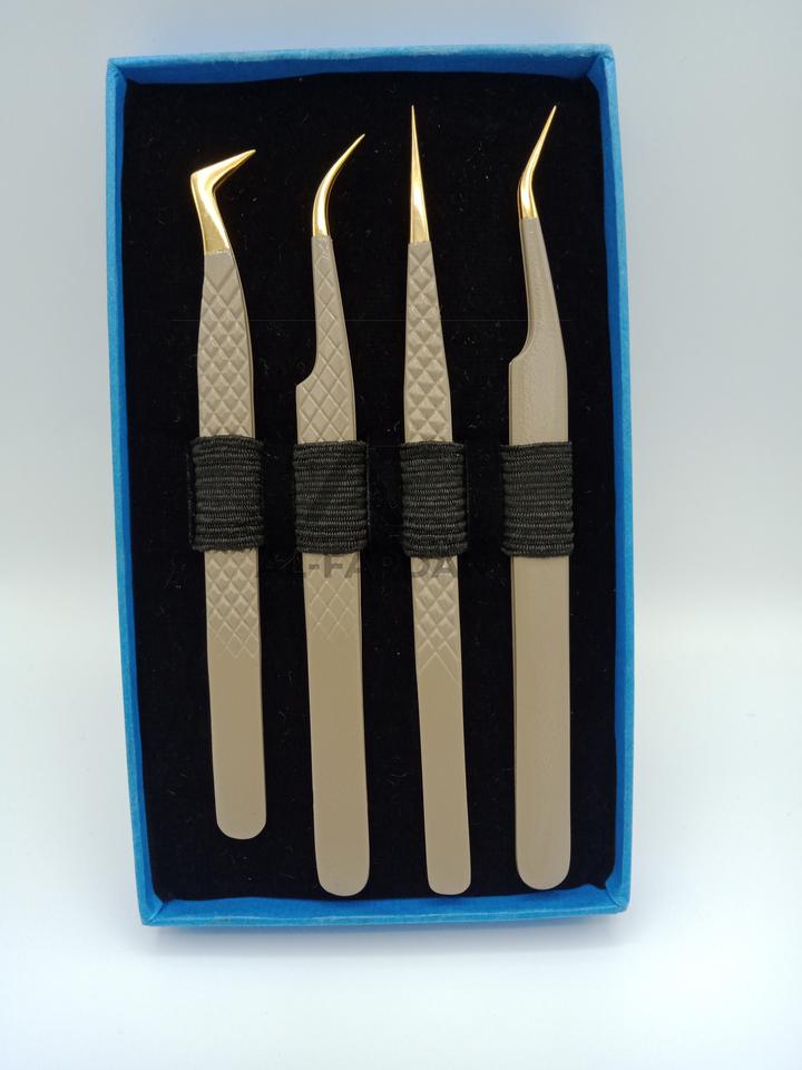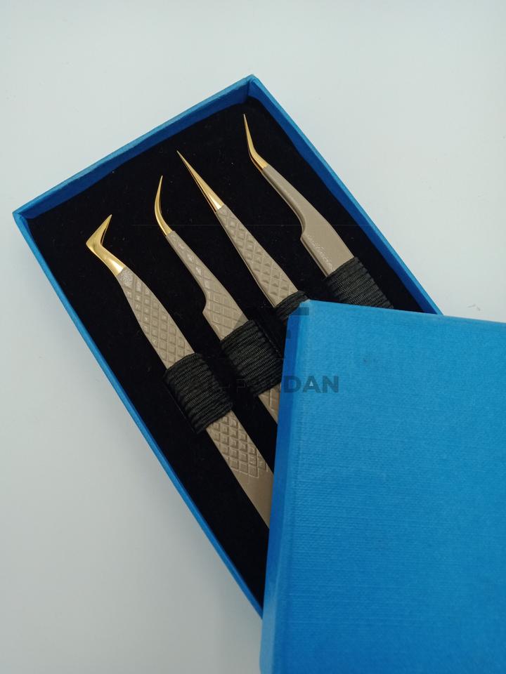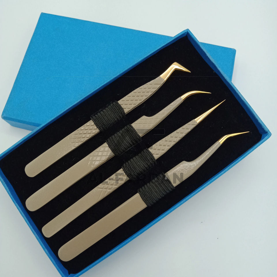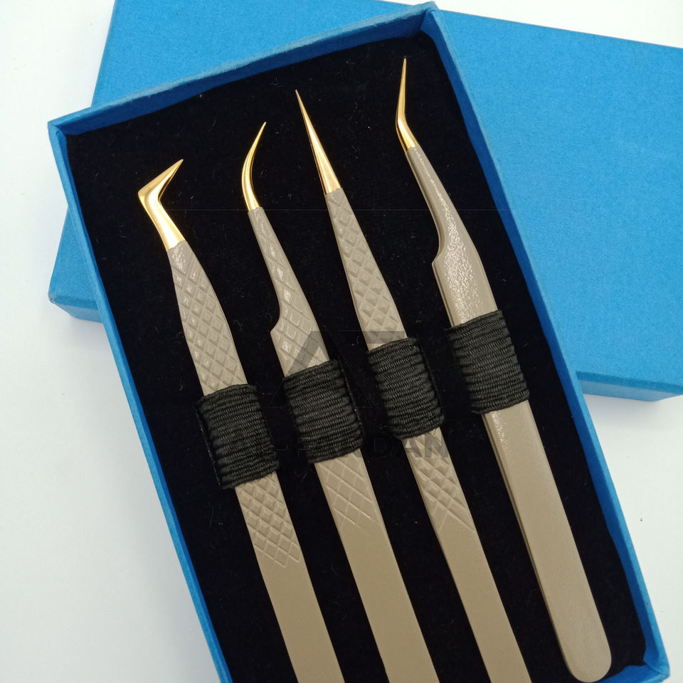แหนบขนตาเพิ่มวอลลุ่มสีนู้ดสีทองปลายไฟเบอร์แหนบต่อขนตาสแตนเลสทนทานปรับแต่งโลโก้ได้ตามต้องการ