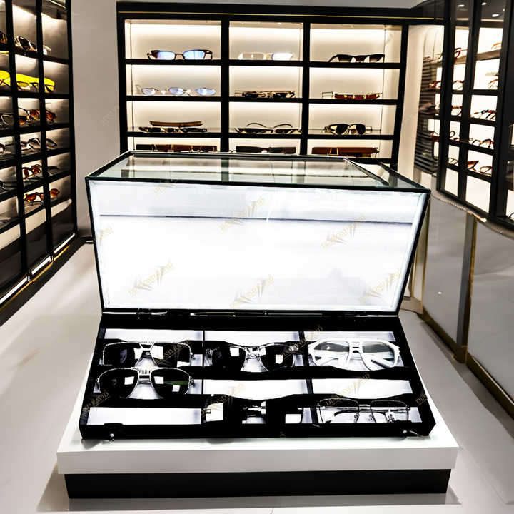 ถาดวางแว่นตาแบบอะคริลิกสำหรับวางบนเคาน์เตอร์ดีไซน์ร้านแว่นตา