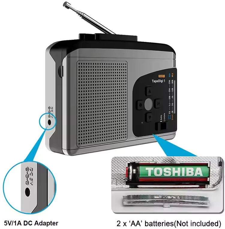 เครื่องเล่นเทปคาสเซ็ตพกพา Ezcap พร้อมวิทยุ AM/FM อินเทอร์เฟซ USB แปลงเทปเป็น MP3 เครื่องบันทึกเสียง ลำโพงในตัว