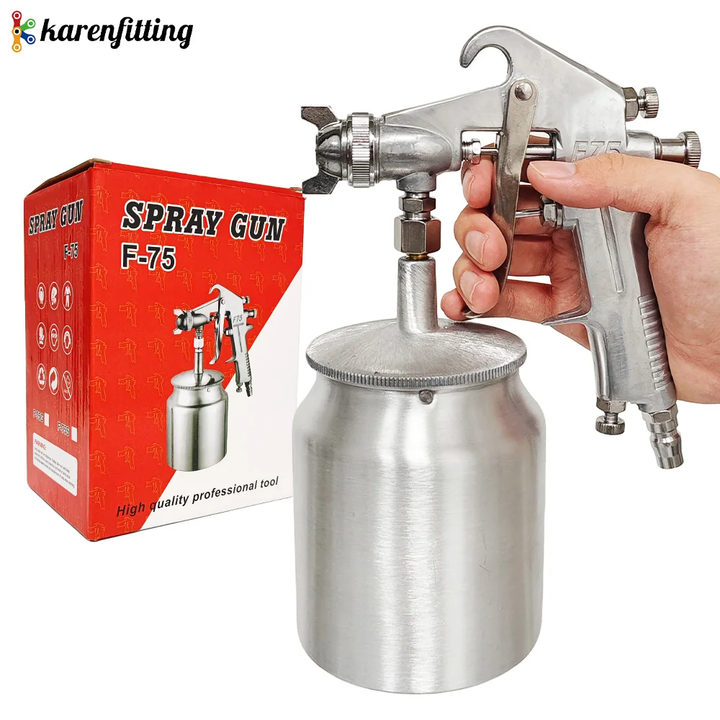 ปืนพ่นสีลม F-75 สำหรับงานช่าง งานเหล็ก ชิ้นส่วนเหล็ก ปืนพ่นสีแบบถังลม ปืนพ่นสีแรงดันสูงแบบลม