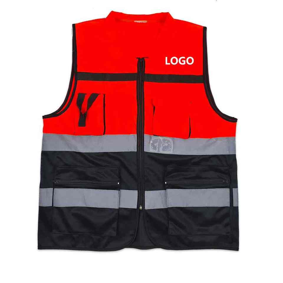 เสื้อกั๊กสะท้อนแสงเรืองแสงสีแดงมองเห็นได้ชัดเจน F-BK603มีกระเป๋าที่สามารถปรับแต่งได้มีซิประบายอากาศได้ดีปรับโลโก้ได้